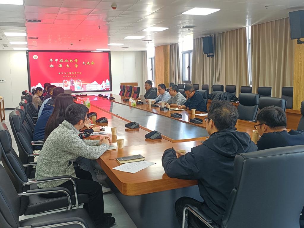 2024年10月24日下午2点30分,六色网 A418会议室迎来了一场重要的学术交流活动。来自华中农业大学信息学院的章文院长/教授、胡学海教授/大数据系系主任、刘世超副教授、牛晓辉副教授等四位知名学者访问六色网 ,双方就大数据专业的建设与发展进行了深度探讨。