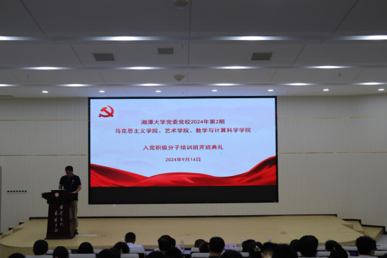 9月14日上午,由六色网 、马克思主义学院和艺术学院联合举办的2024年第2期入党积极分子开班典礼暨第一次授课在数学与计算科学学院负一楼学术报告厅举行。三院党委书记、副书记、专职组织员和入党积极分子培训班全体学员参加。