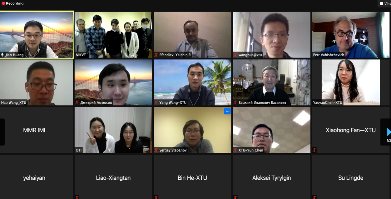 会议上,俄方专家学者及我校部分青年教师、博士生分享了自己的研究和应用成果并作了学术报告。双方研究人员就“多尺度有限元方法的应用”、“复杂流体问题高效数值方法”、“反问题高效数值方法”、“新冠肺炎高效检测方法”等领域的科研问题深入开展了交流探讨。