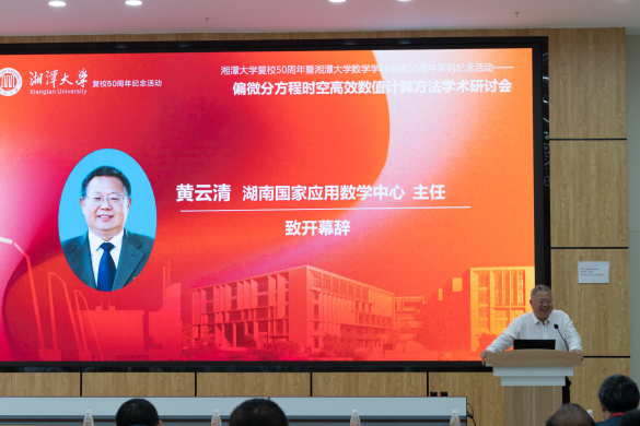 湖南国家应用数学中心主任黄云清教授应邀出席开幕式,黄云清教授热烈欢迎远道而来的与会专家学者,鼓励大家围绕国家在高性能计算和复杂系统模拟领域的迫切需求,深入探讨时空并行计算的创新特点及其在科学和工程中的应用。他表达了对于本次会议的高度期待,希望能通过系列主题活动,进一步加强学术研究与人才培养的交流合作,为高效数值计算方法的广泛应用提供强有力的理论和技术支撑。同时邀请各位专家提出宝贵意见,共同推动数学学科与学校的未来发展。