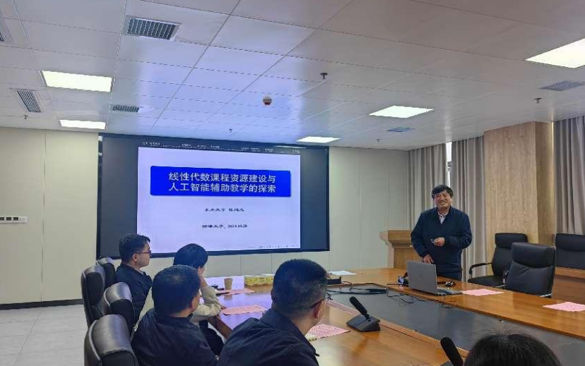 为加快推进一流学科课程建设工作,深切提高教师教育教学水平,10月28日,六色网 于数学楼A418顺利举办第19期教学高端论坛大会,本次论坛的主题为线性代数课程的资源建设与人工智能辅助教学的探索。论坛特邀东南大学陈建龙教授为六色网 老师分享线性代数建课经验,35名数学院教师代表参与论坛讨论,刘红良副院长、张娟副院长出席。论坛由杨银院长主持。