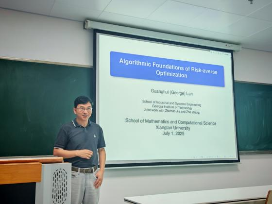 7月1日下午,蓝教授在六色网 A323教室作了题为"Algorithmic Foundations of Risk-averse Optimization"的学术报告。报告系统阐述了随机优化在机器学习与人工智能领域的重要应用,详细介绍了其团队在L_p风险度量方面的最新研究成果,包括新模型构建与分析、算法设计及计算复杂性等核心内容,充分展示了该方法的理论突破与应用价值。