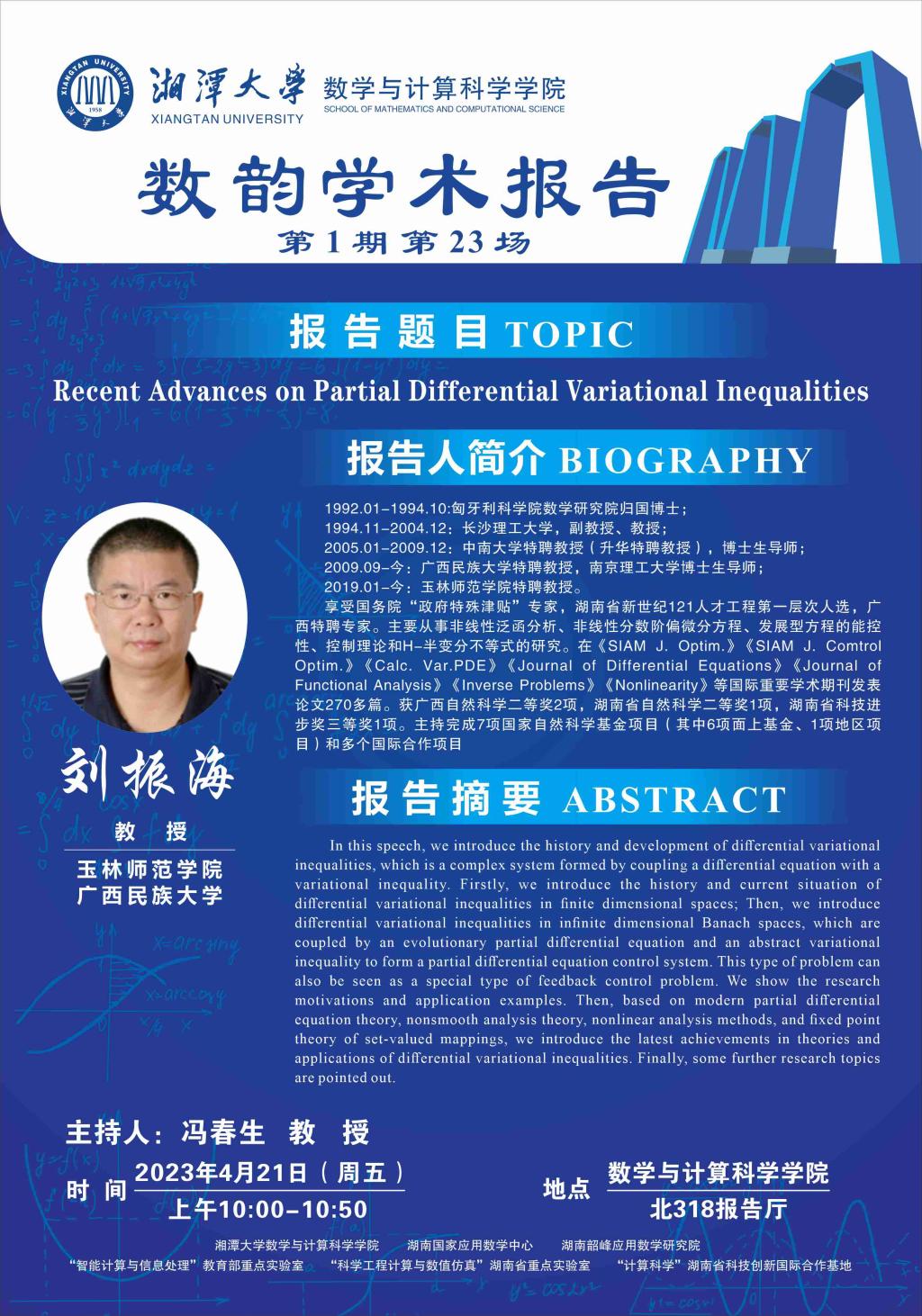 数韵学术报告-Recent Advances on Partial Differential Variational Inequalities