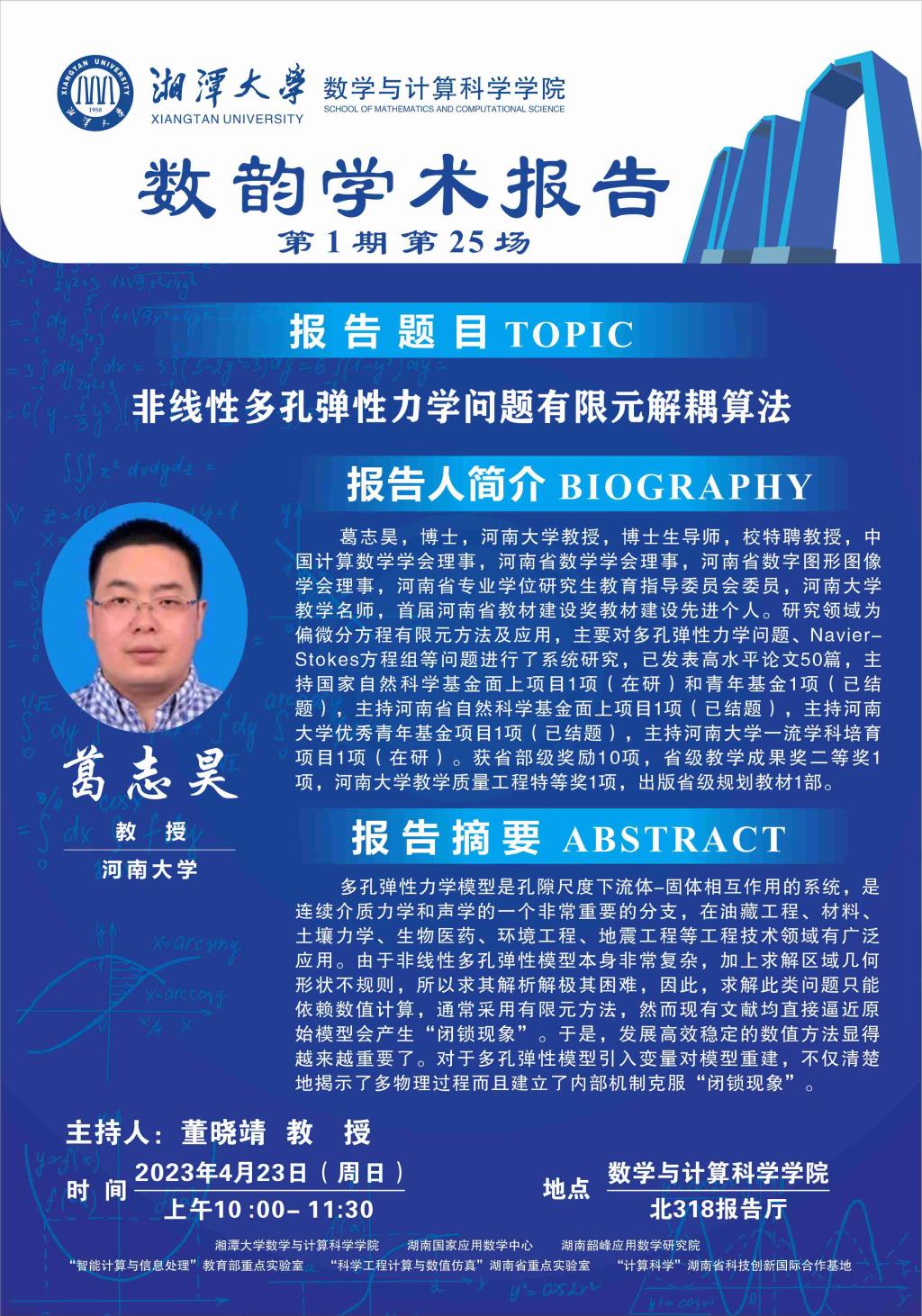 数韵学术报告-非线性多孔弹性力学问题有限元解耦算法