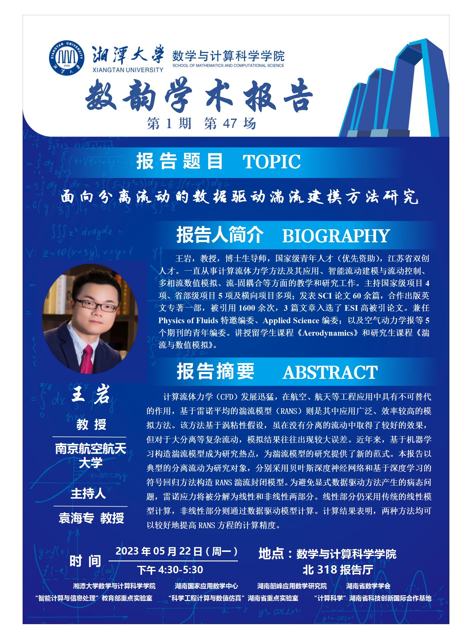 数韵学术报告-面向分离流动的数据驱动湍流建模方法研究