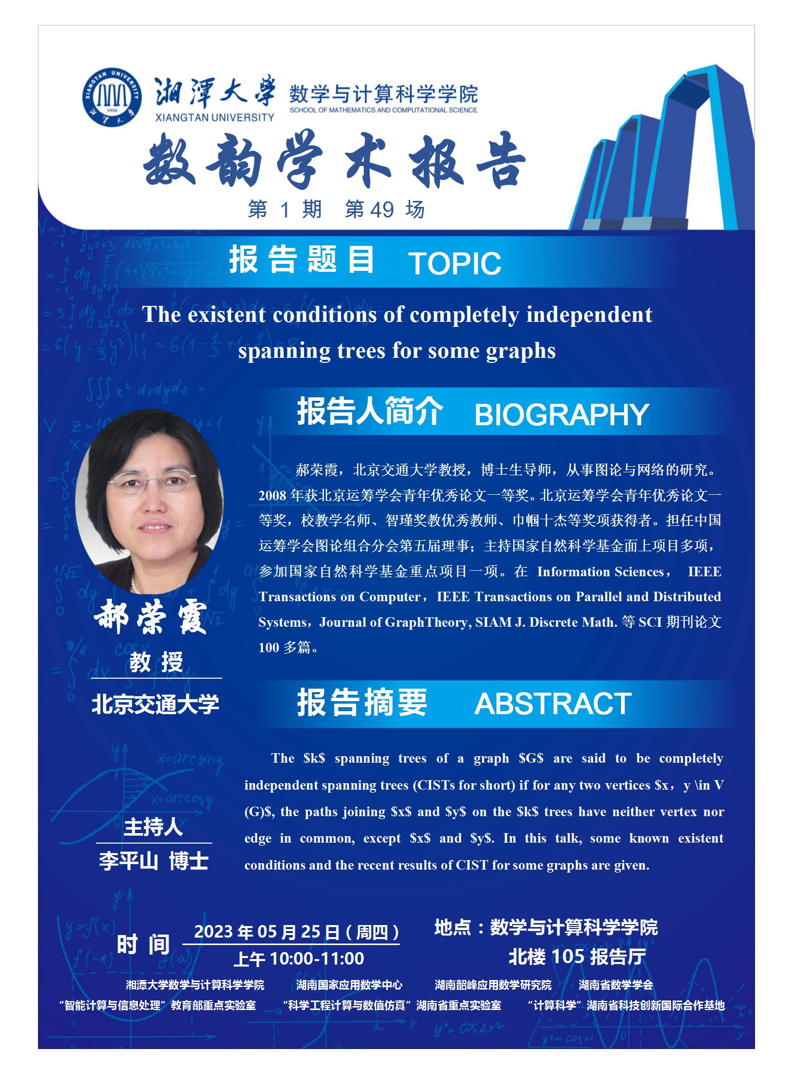 数韵学术报告-The existent conditions of completely independent spanning trees for some graphs