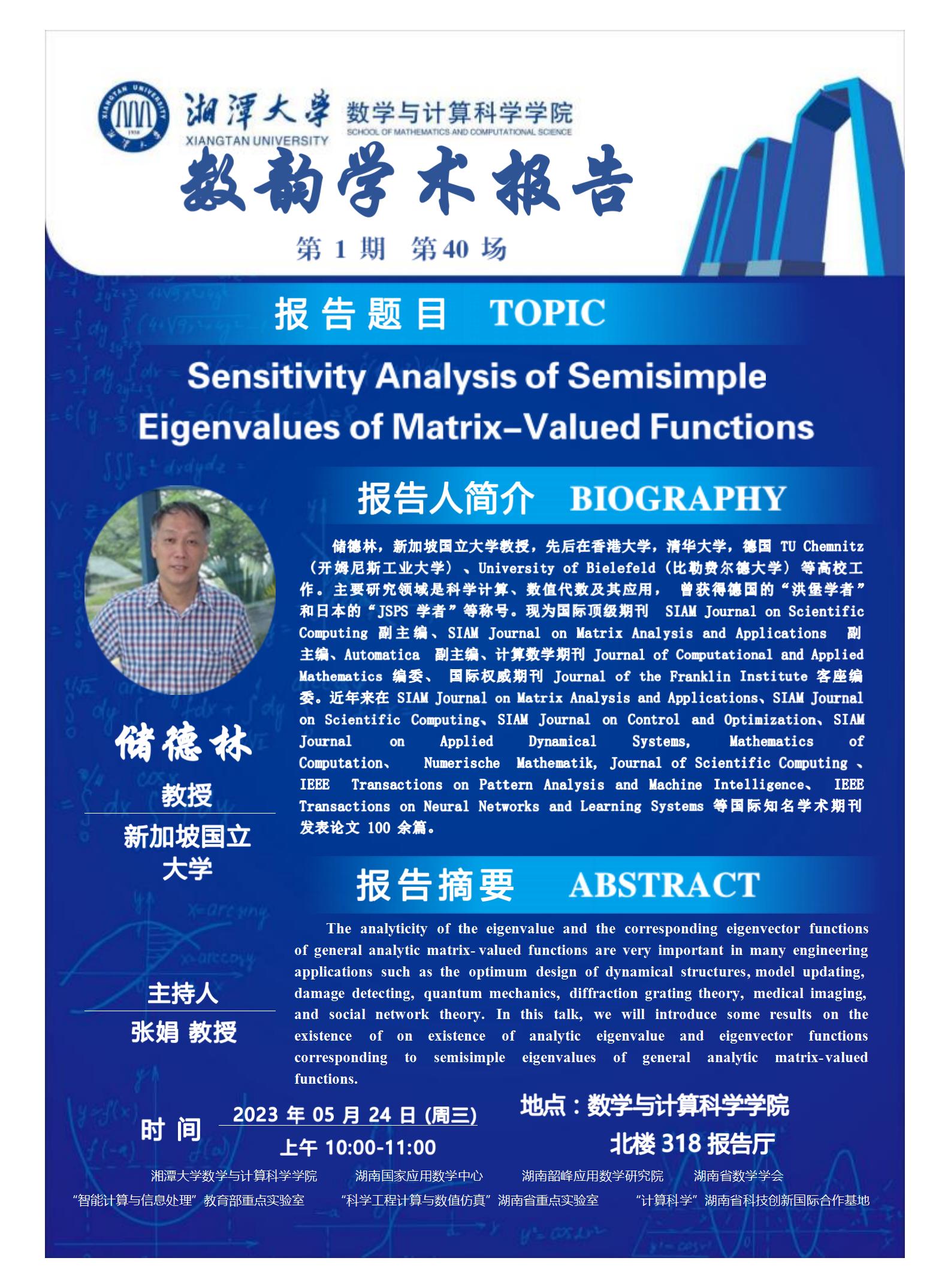 数韵学术报告-Sensitivity Analysis of Semisimple Eigenvalues of Matrix-Valued Functions