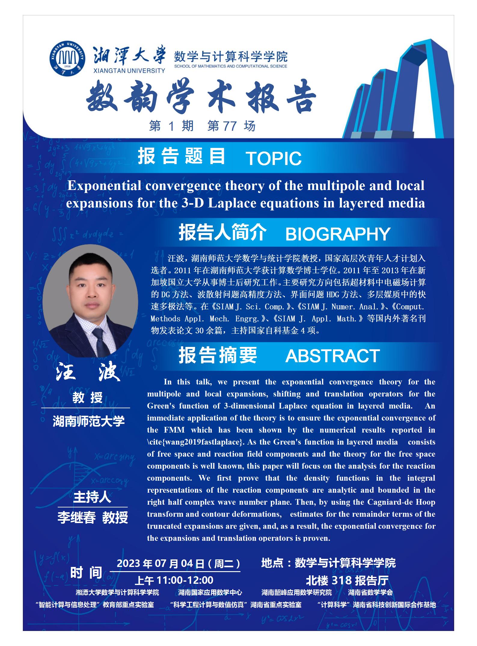 数韵学术报告-Exponential convergence theory of the multipole and local expansions for the 3-D Laplace equations in layered media