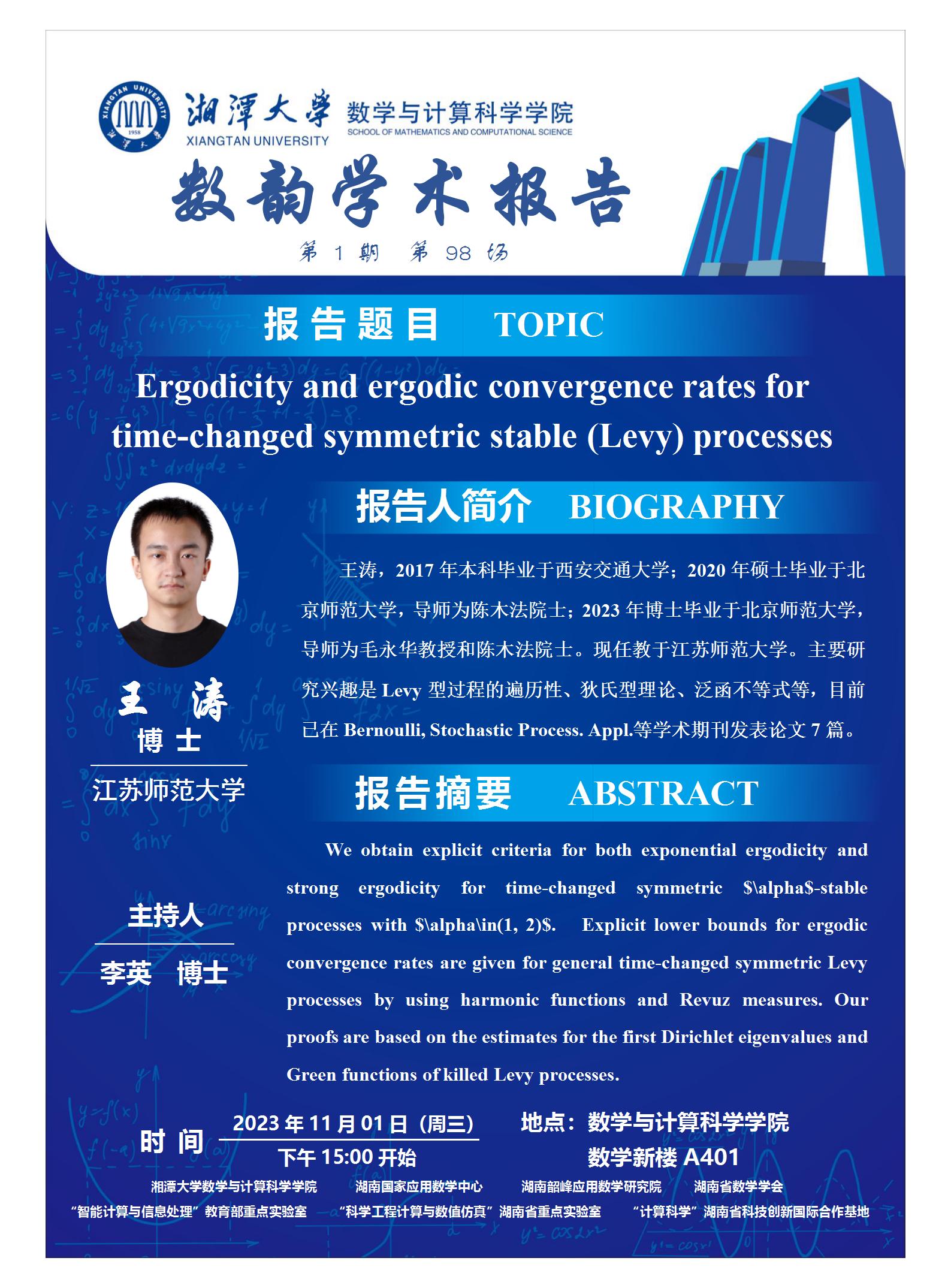 数韵学术报告-Ergodicity and ergodic convergence rates for time-changed symmetric stable (Levy) processes