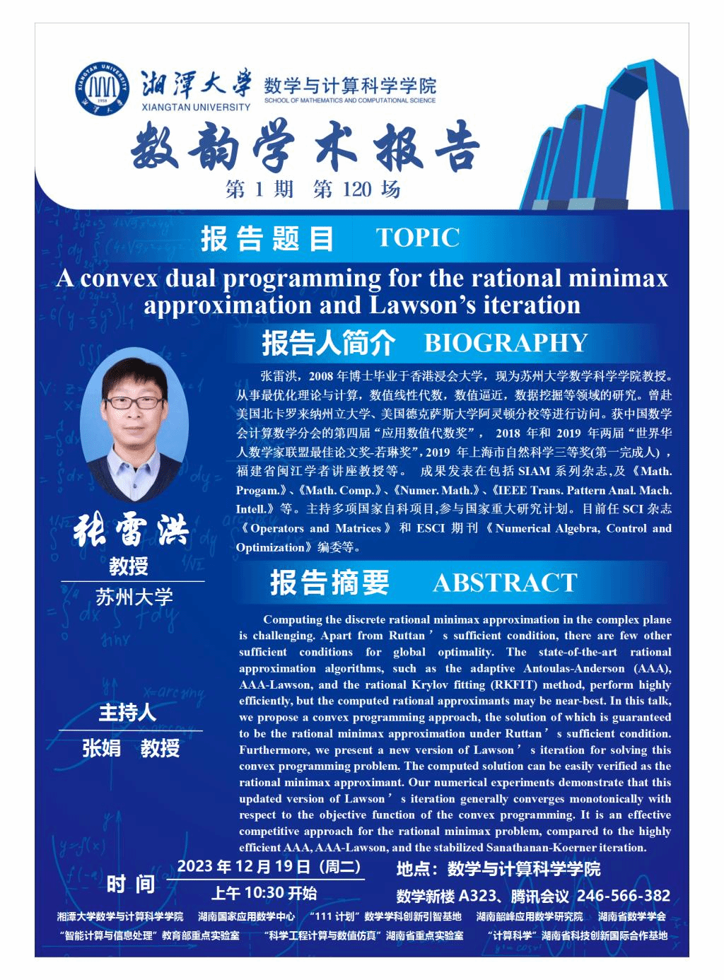 数学新楼A323、腾讯会议 246-566-382