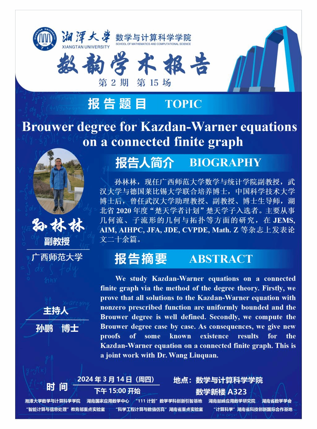 数韵学术报告-Brouwer degree for Kazdan-Warner equations on a connected finite graph