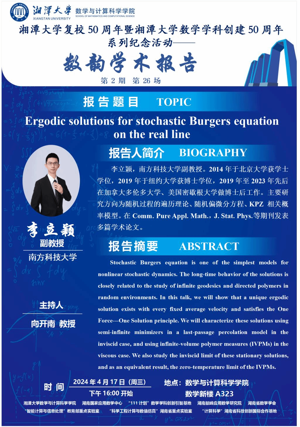 数韵学术报告-Ergodic solutions for stochastic Burgers equation on the real line