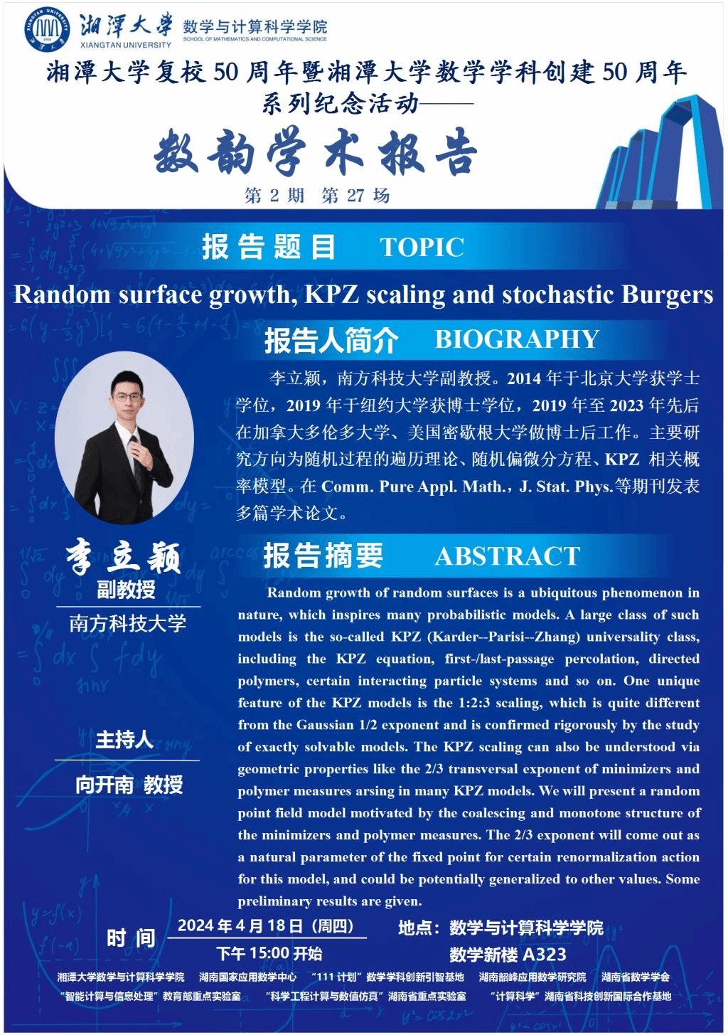 数韵学术报告-Random surface growth, KPZ scaling and stochastic Burgers