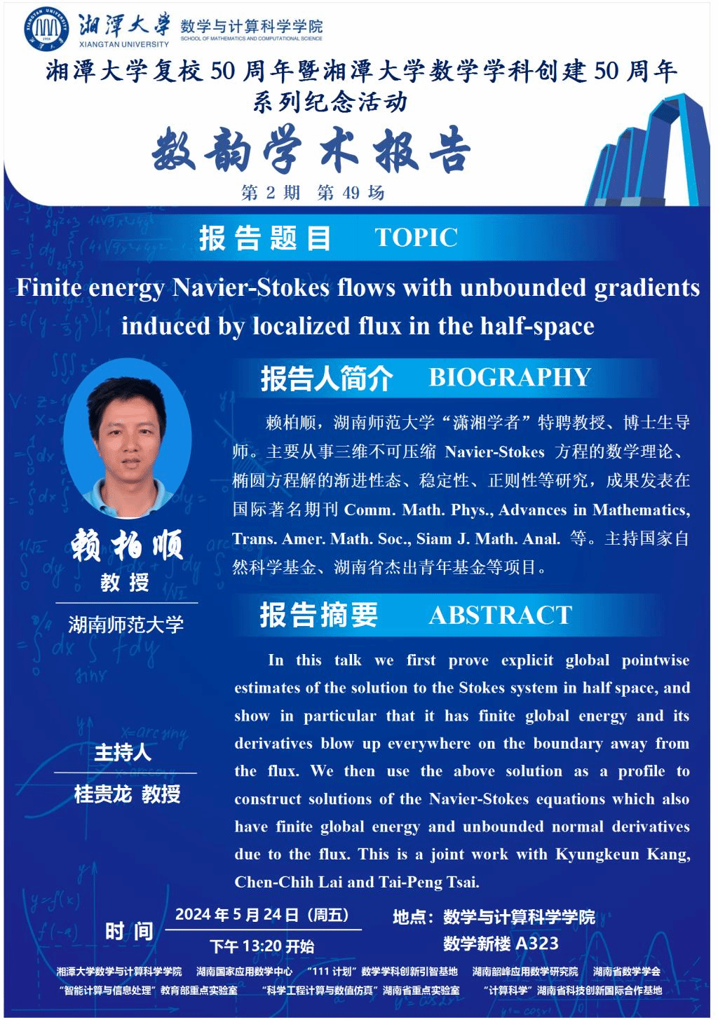 数韵学术报告-Finite energy Navier-Stokes flows with unbounded gradients induced by localized flux in the half-space