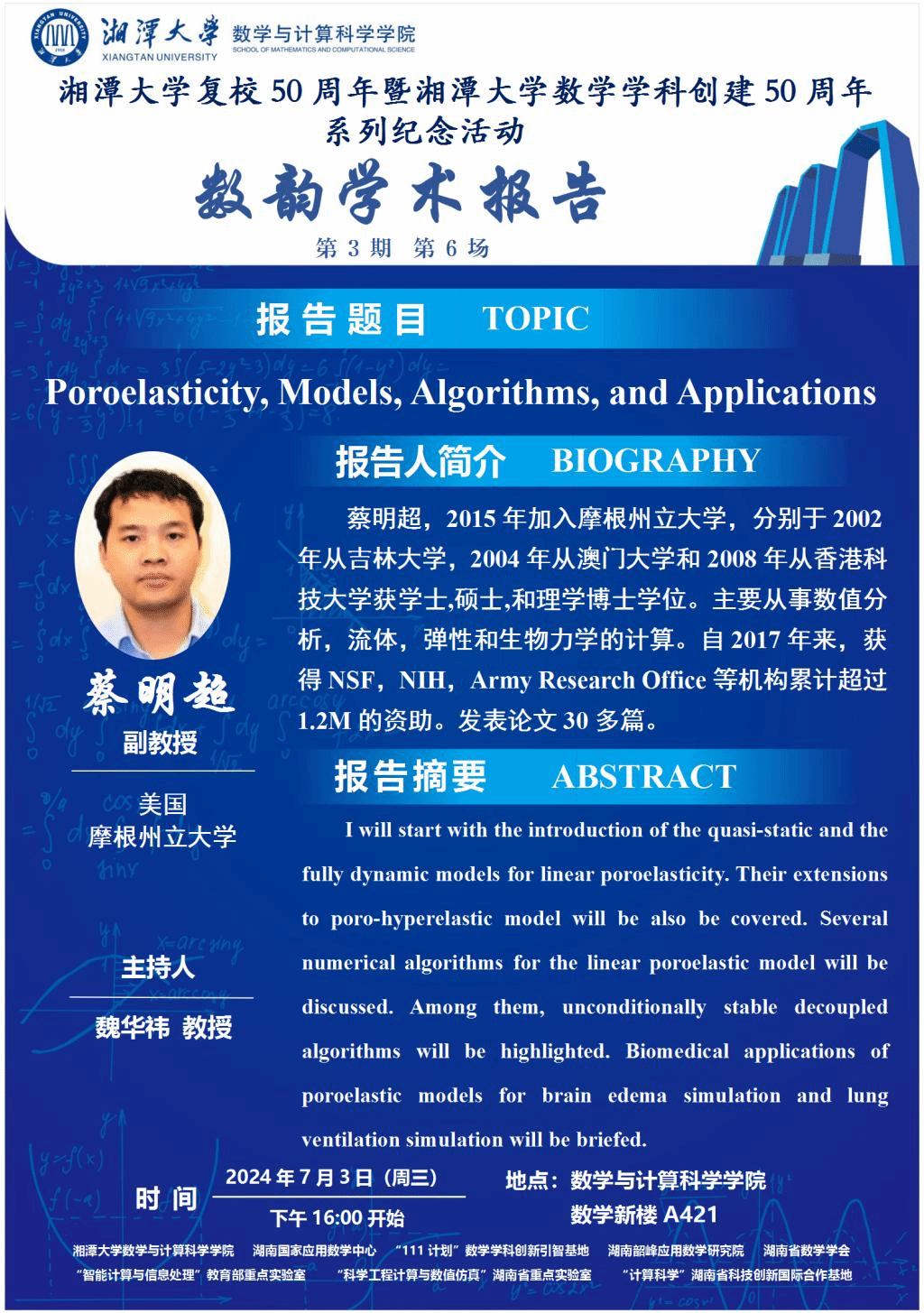 数韵学术报告-Poroelasticity, Models, Algorithms, and Applications