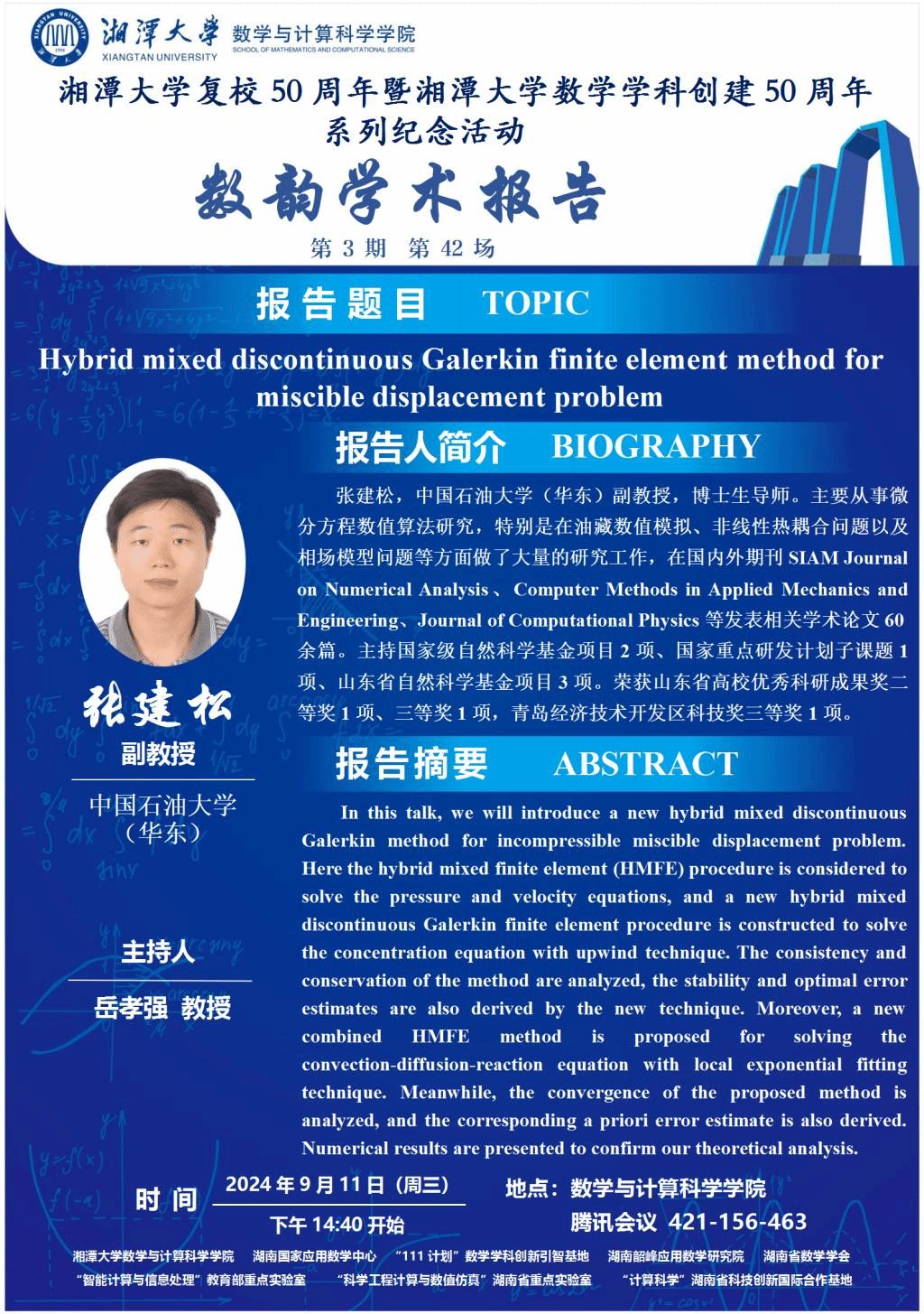 数韵学术报告-Hybrid mixed discontinuous Galerkin finite element method for miscible displacement problem