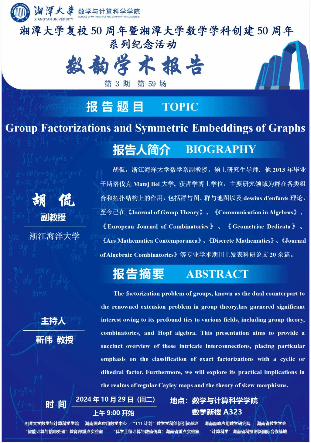 数韵学术报告-Group Factorizations and Symmetric Embeddings of Graphs