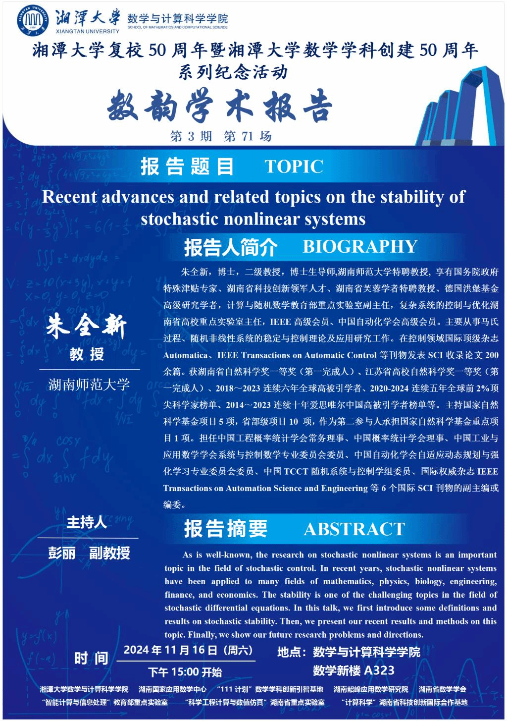 数韵学术报告-Recent advances and related topics on the stability of stochastic nonlinear systems