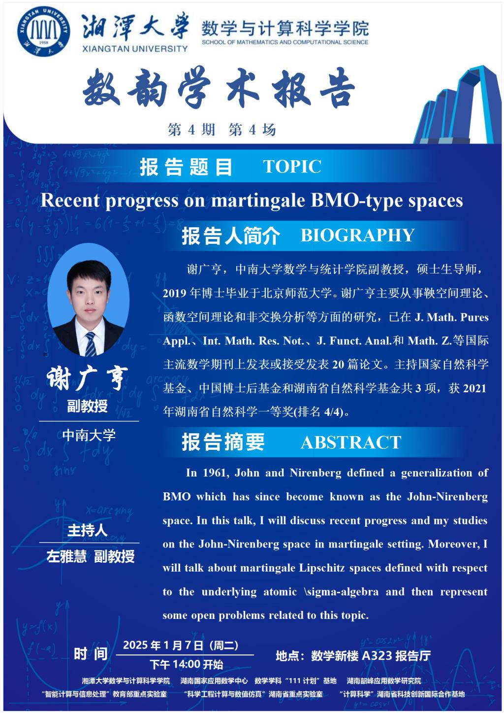数韵学术报告-Recent progress on martingale BMO-type spaces