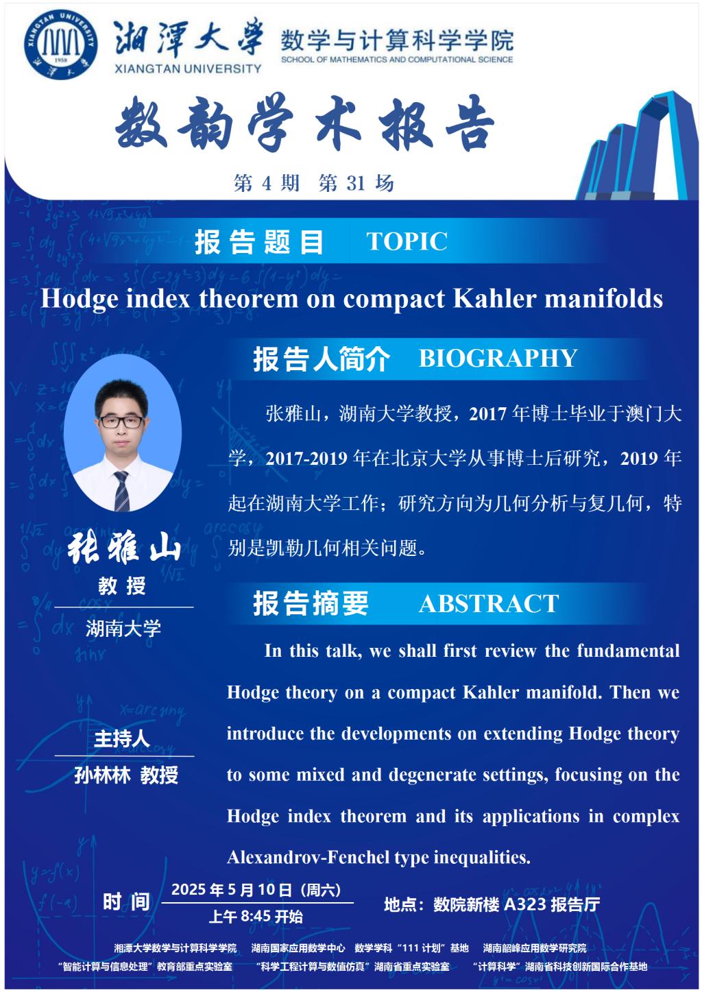 数韵学术报告-Hodge index theorem on compact Kahler manifolds