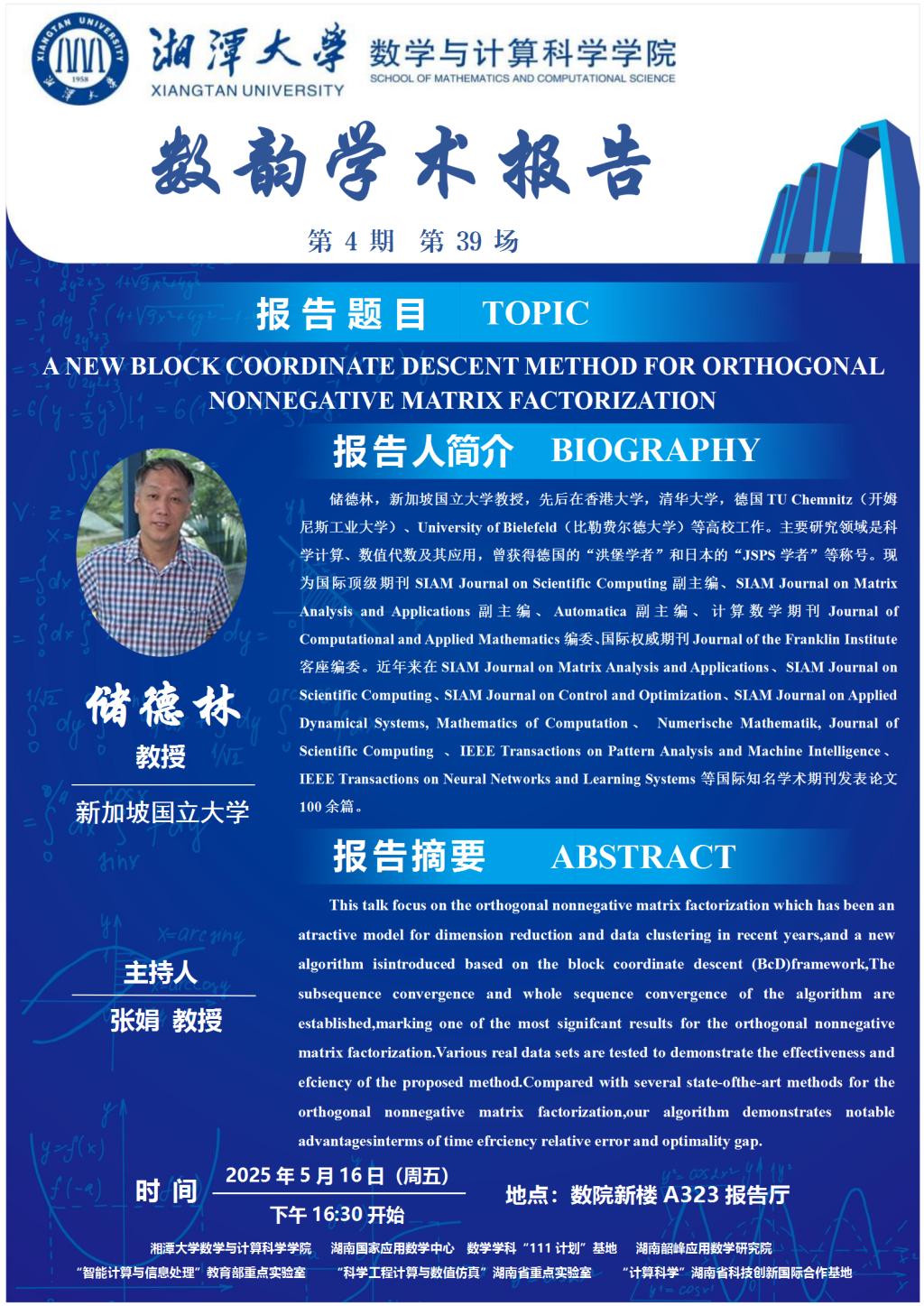 数韵学术报告-A NEW BLOCK COORDINATE DESCENT METHOD FOR ORTHOGONAL NONNEGATIVE MATRIX FACTORIZATION