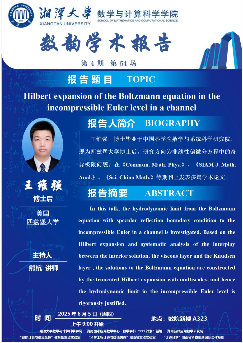数韵学术报告-Hilbert expansion of the Boltzmann equation in the incompressible Euler level in a channel