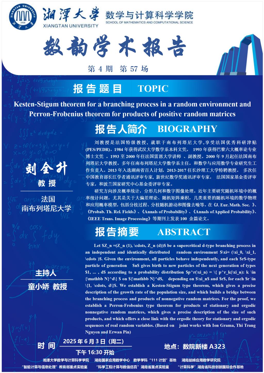 数韵学术报告-Kesten-Stigum theorem for a branching process in a random environment and Perron-Frobenius theorem for products of positive random matrices