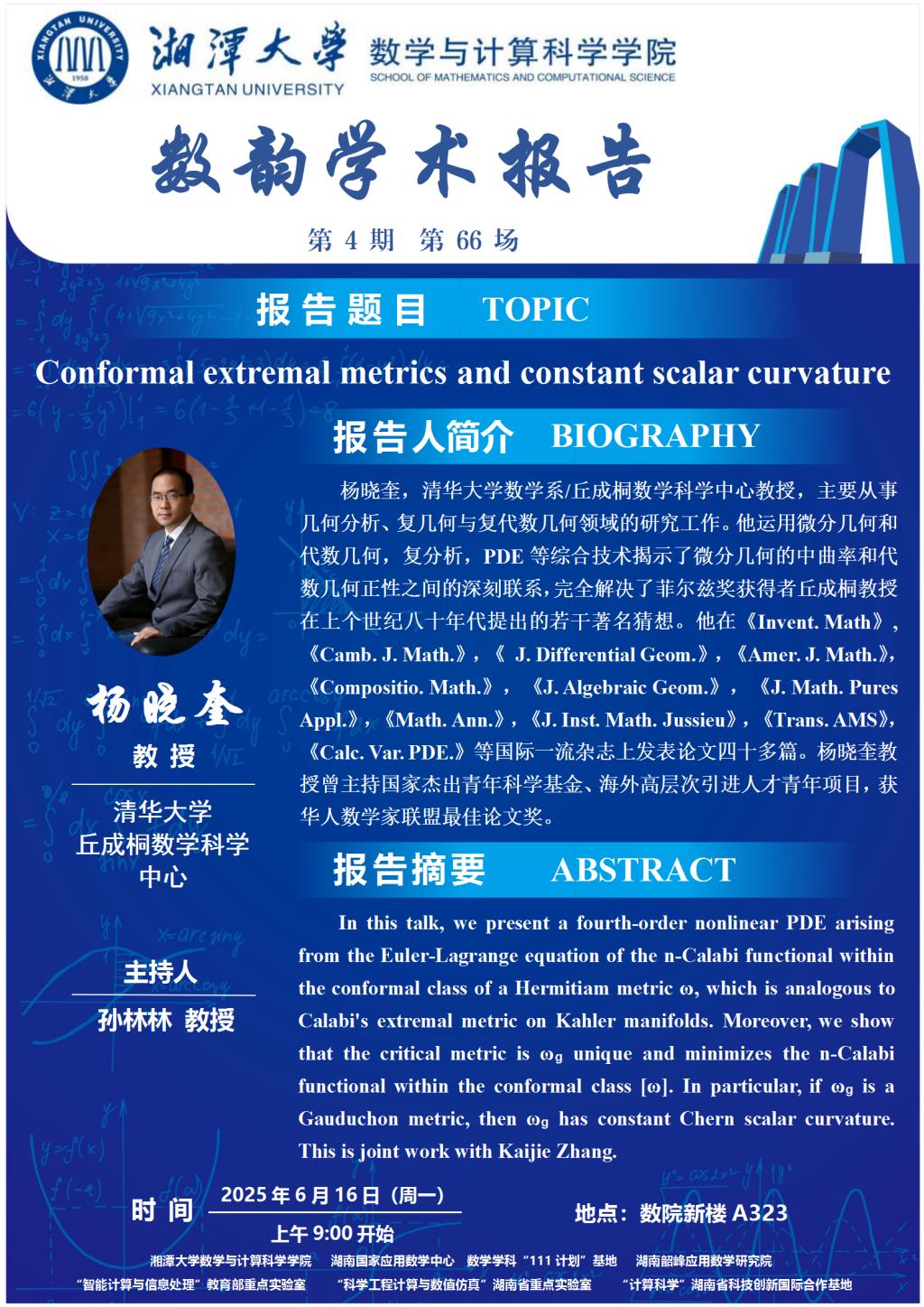 数韵学术报告-Conformal extremal metrics and constant scalar curvature