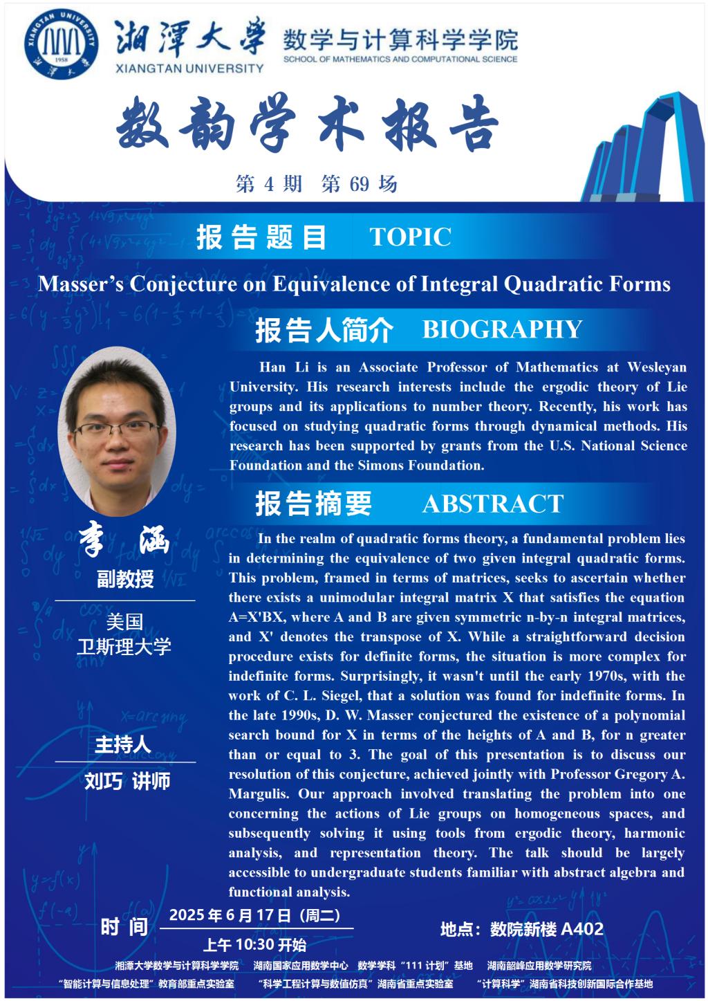 数韵学术报告-Masser’s Conjecture on Equivalence of Integral Quadratic Forms