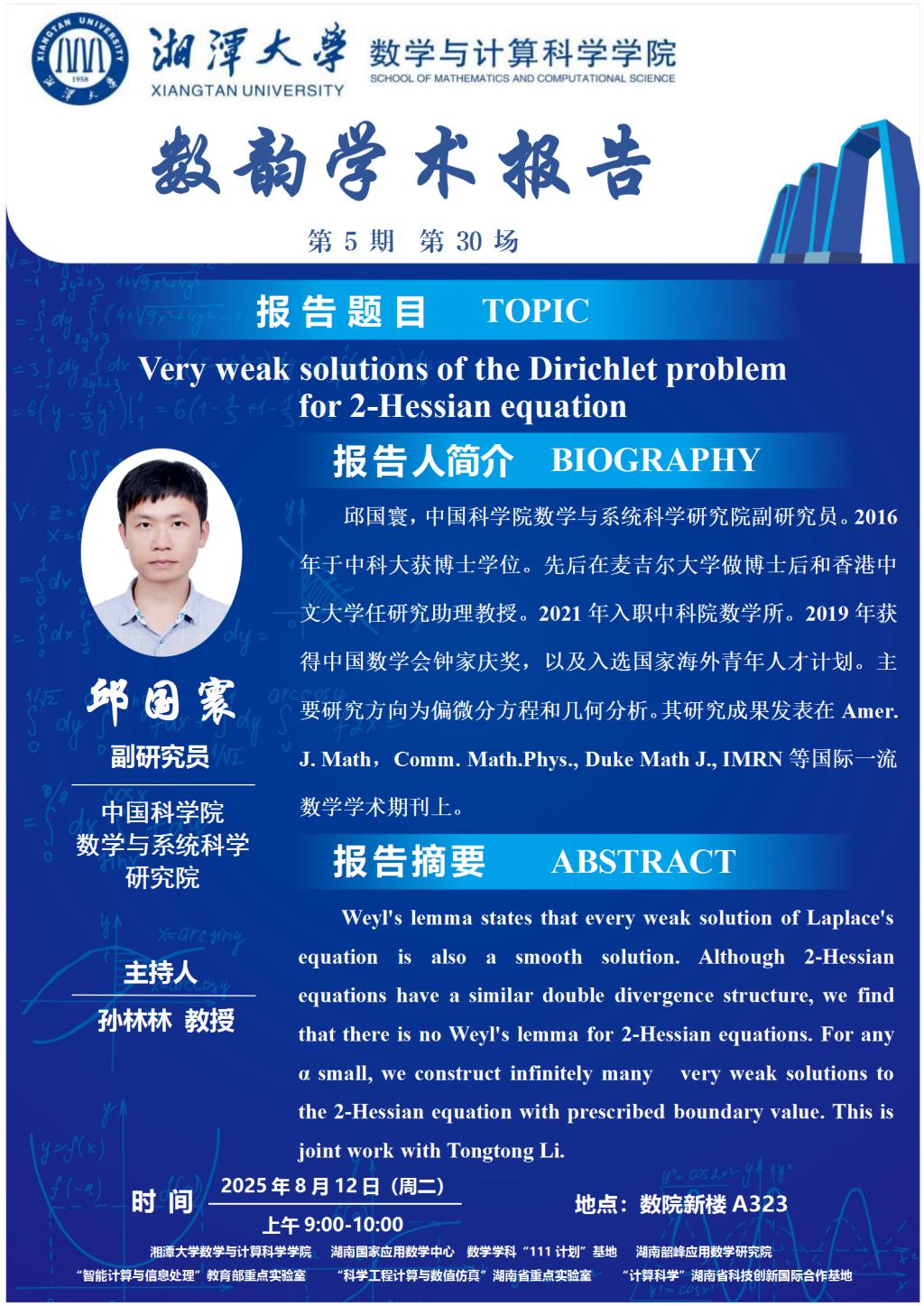 数韵学术报告-Very weak solutions of the Dirichlet problem for 2-Hessian equation