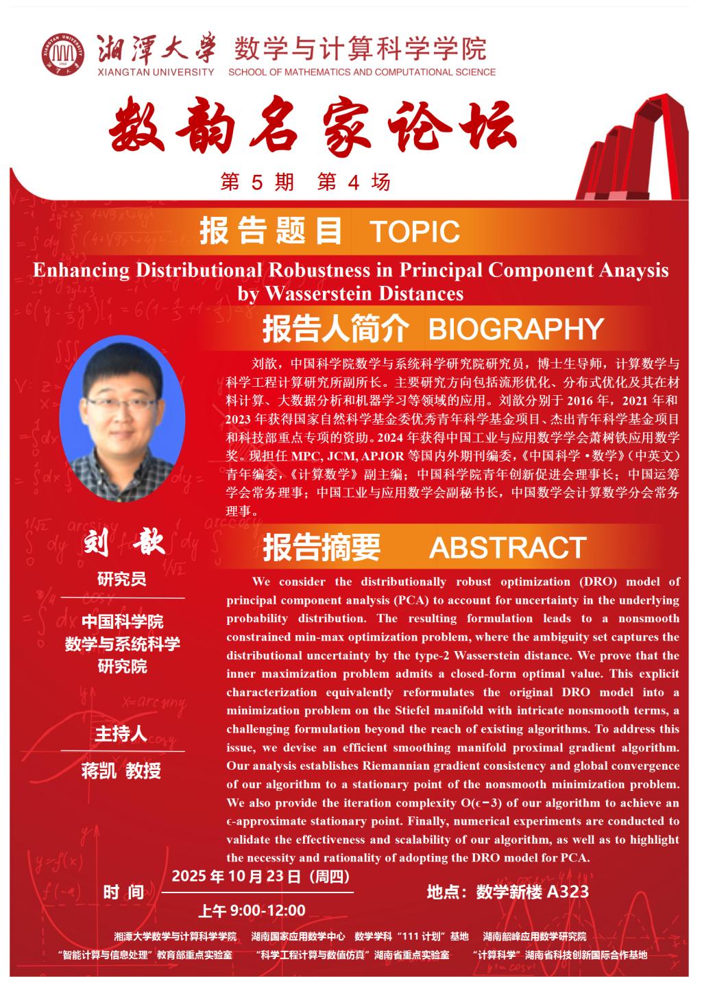 数韵名家论坛-Enhancing Distributional Robustness in Principal Component Anaysis by Wasserstein Distances