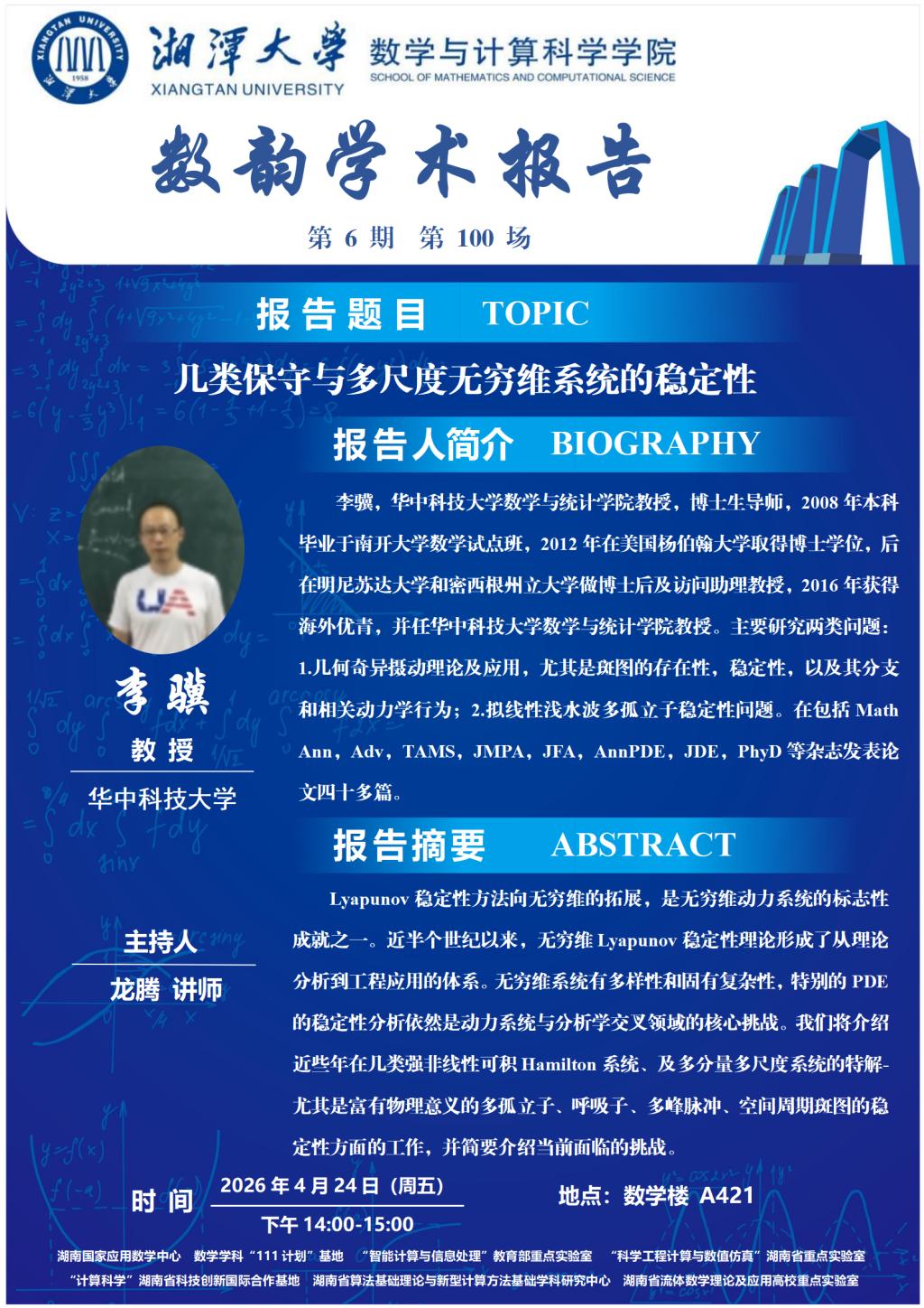 数韵学术报告—李骥—几类保守与多尺度无穷维系统的稳定性