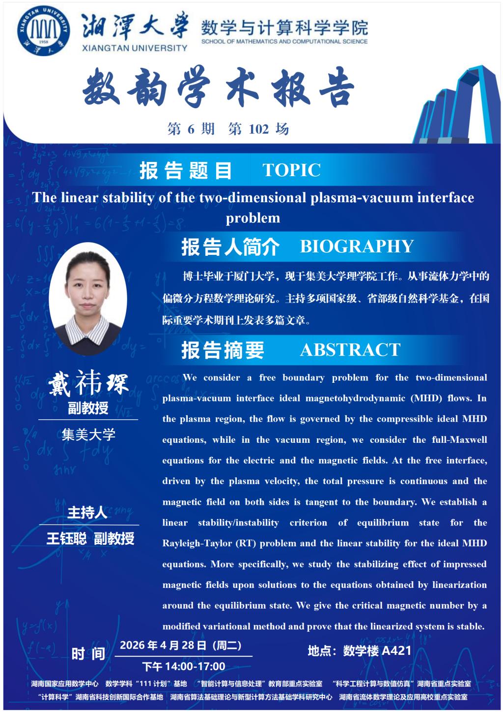 数韵学术报告—戴祎琛—The linear stability of the two-dimensional plasma-vacuum interface problem